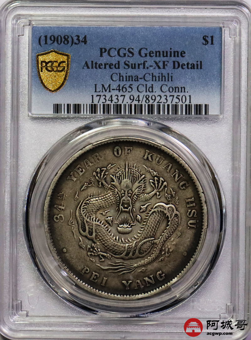 Lot:11 原味 包浆 北洋34年七钱二分 PCGS XF