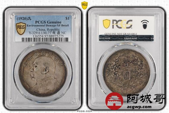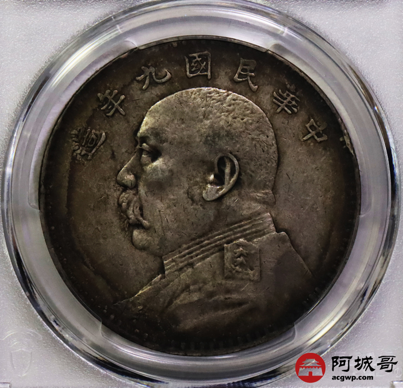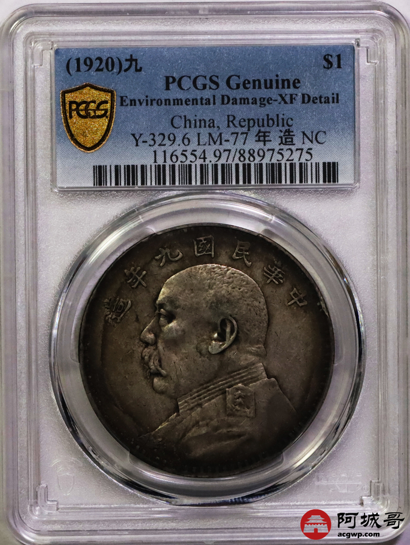 Lot:6 原味老包浆 九年粗发壹圆 PCGS XF