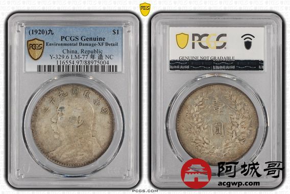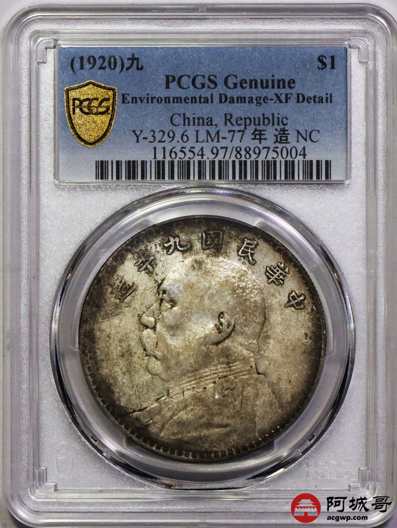 Lot:11 原味 包浆 九年大头壹圆 PCGS XF