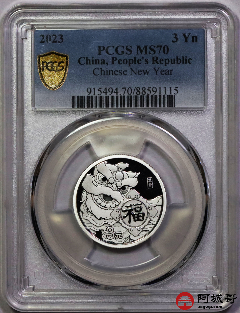 Lot:35 2023年 福字3元银币 PCGS MS70