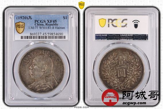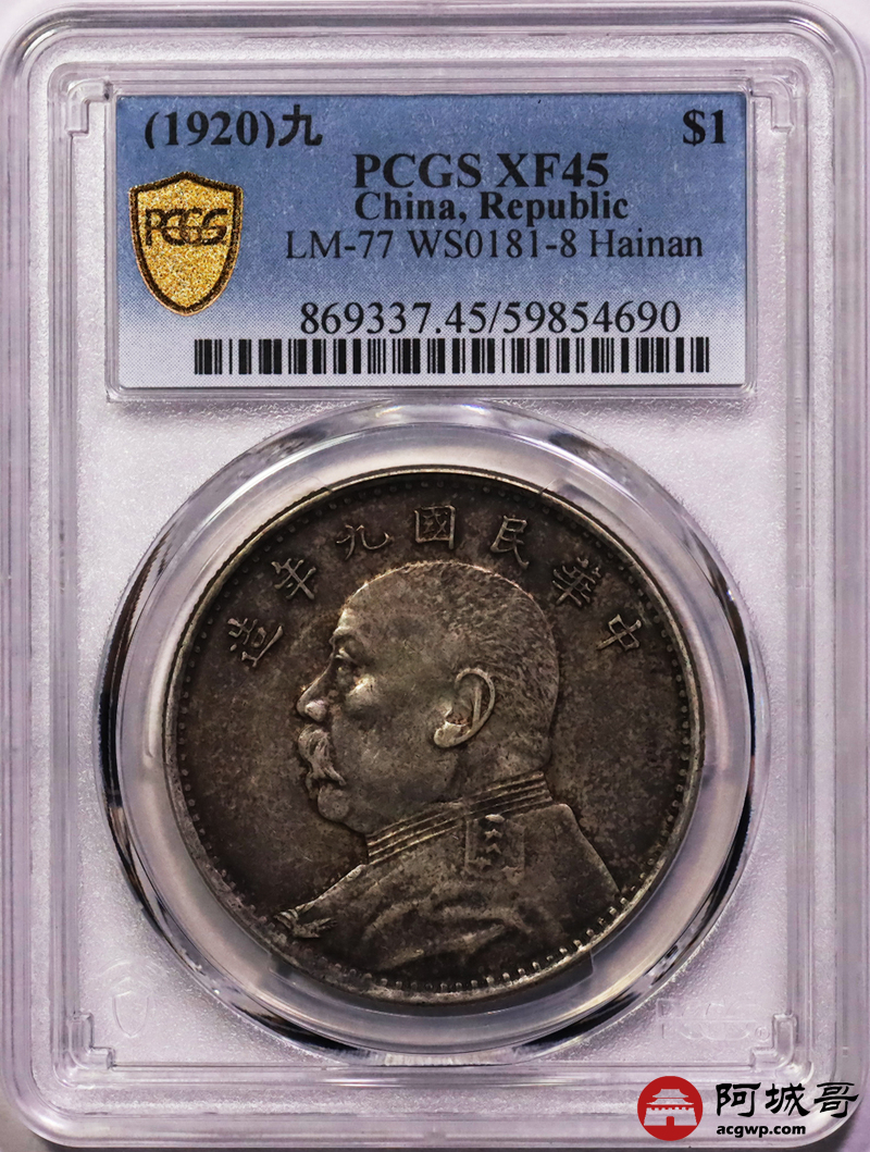 Lot:5 酱彩包浆 九年大头海南版 PCGS XF45