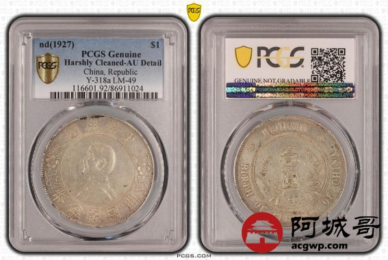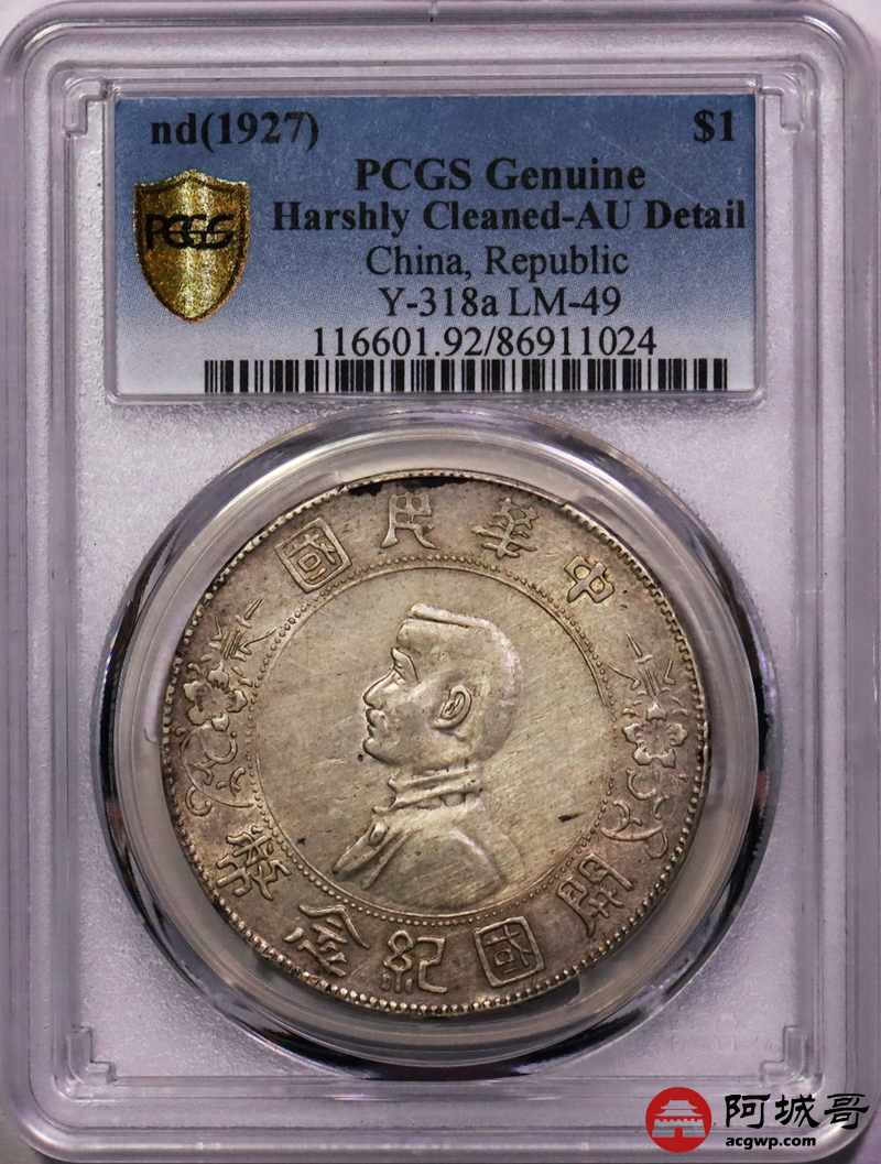 Lot:25 原味 黄油底光 孙像小头壹圆 PCGS AU