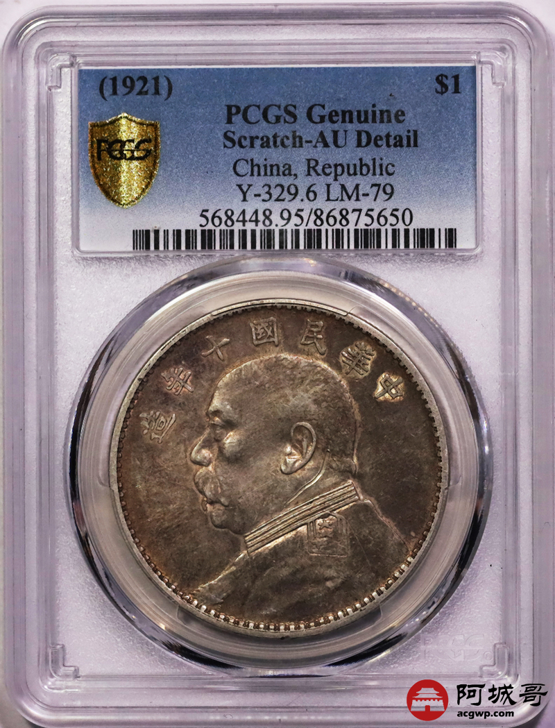 Lot:19 原味 黄油彩 十年大头壹圆 PCGS AU