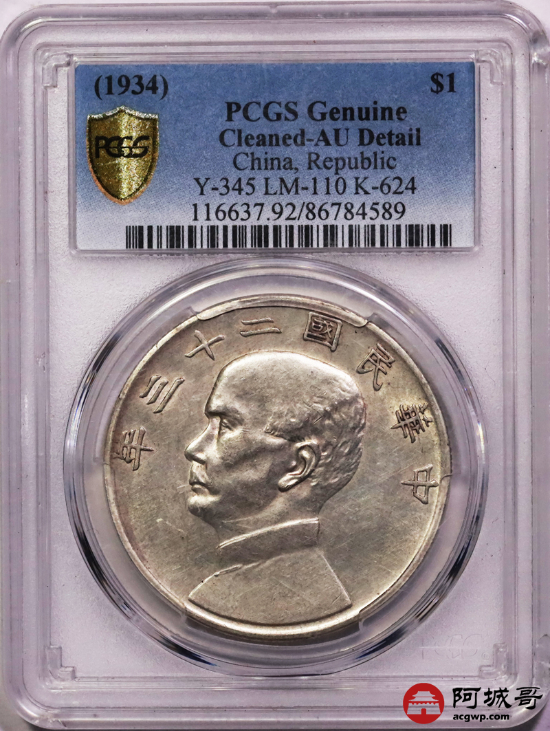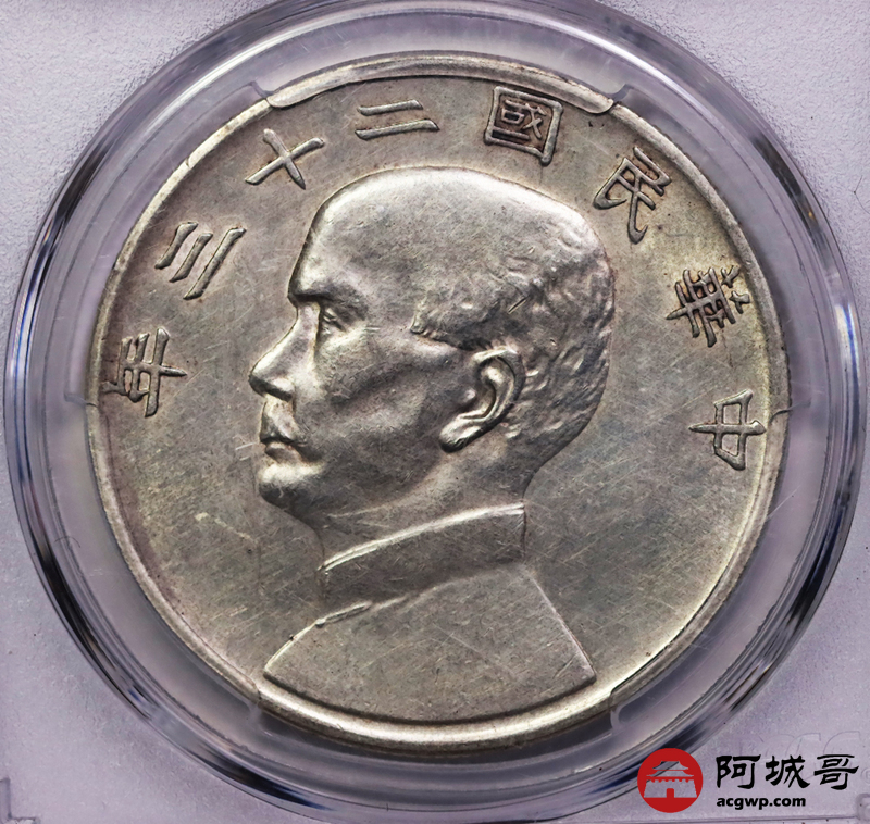 Lot:26 深打黄油底光 二十三年船洋 PCGS AU