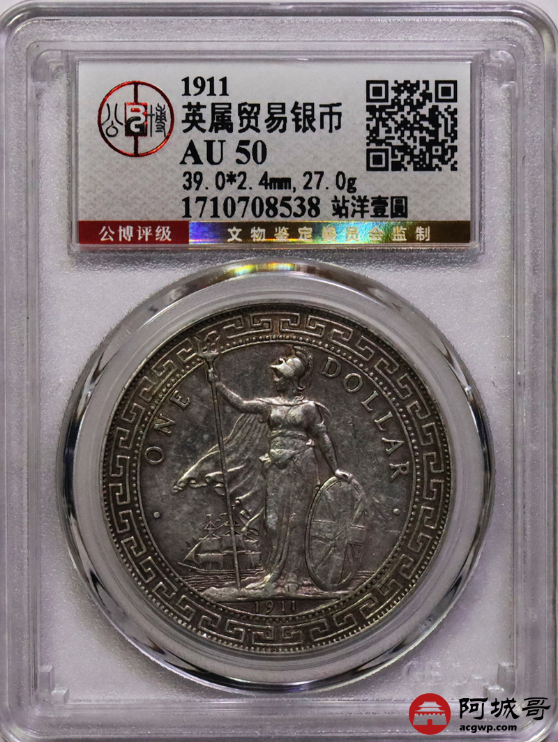 Lot:16 原味 底光 1911B站洋壹圆 公博 AU50