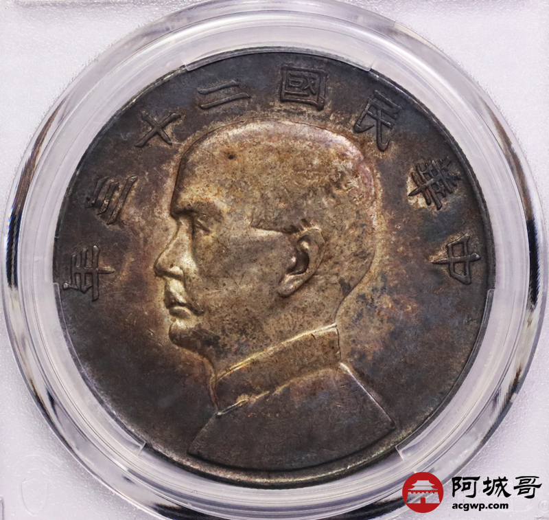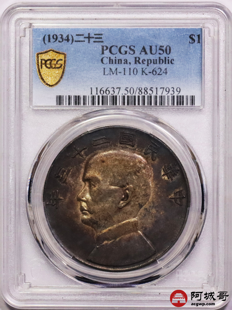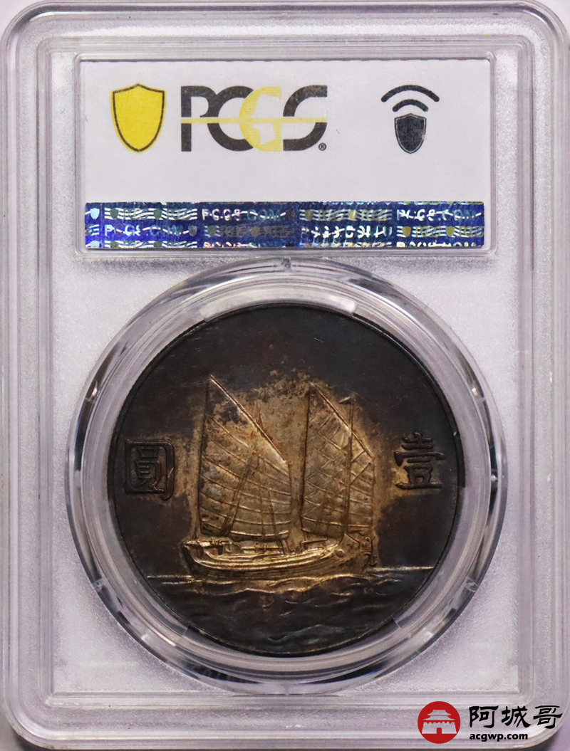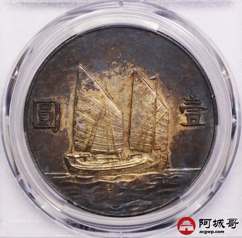 Lot:7 双面环黑彩 二十三年船洋 PCGS AU50