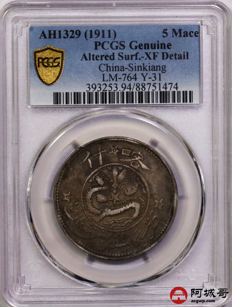 Lot:30 原味老包浆 新疆喀什饷银伍钱 PCGS XF
