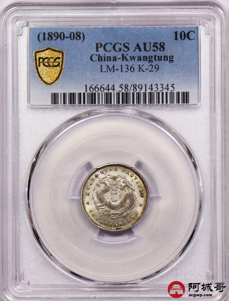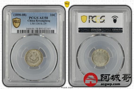 Lot:10 黄油转光 广东光绪七分二厘 PCGS AU58