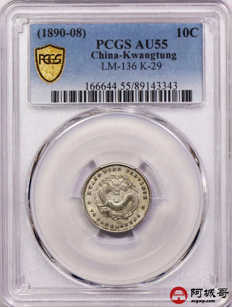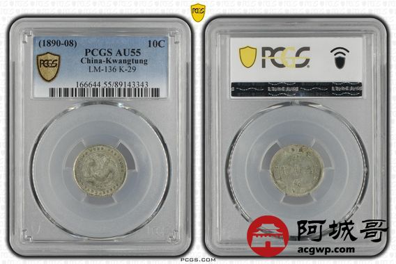 Lot:14 黄油转光 广东光绪七分二厘 PCGS AU55