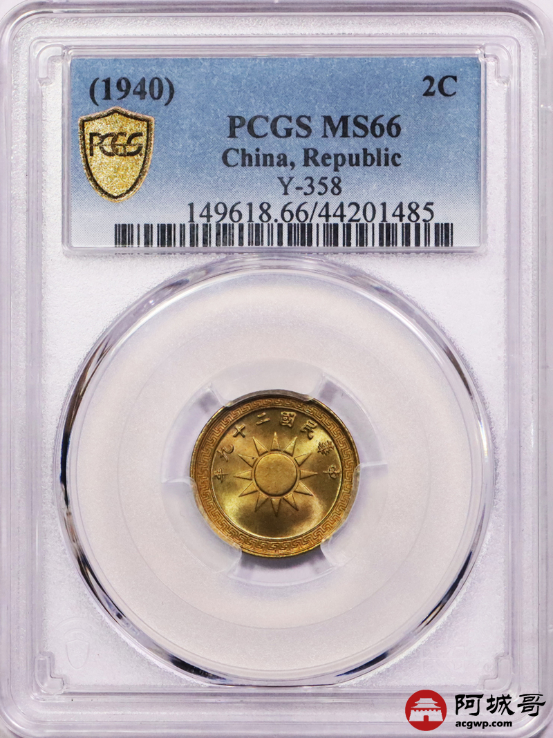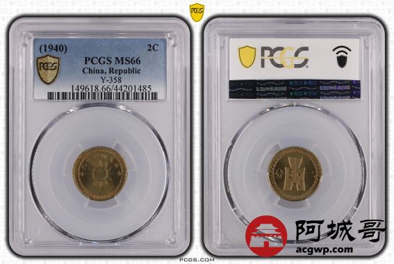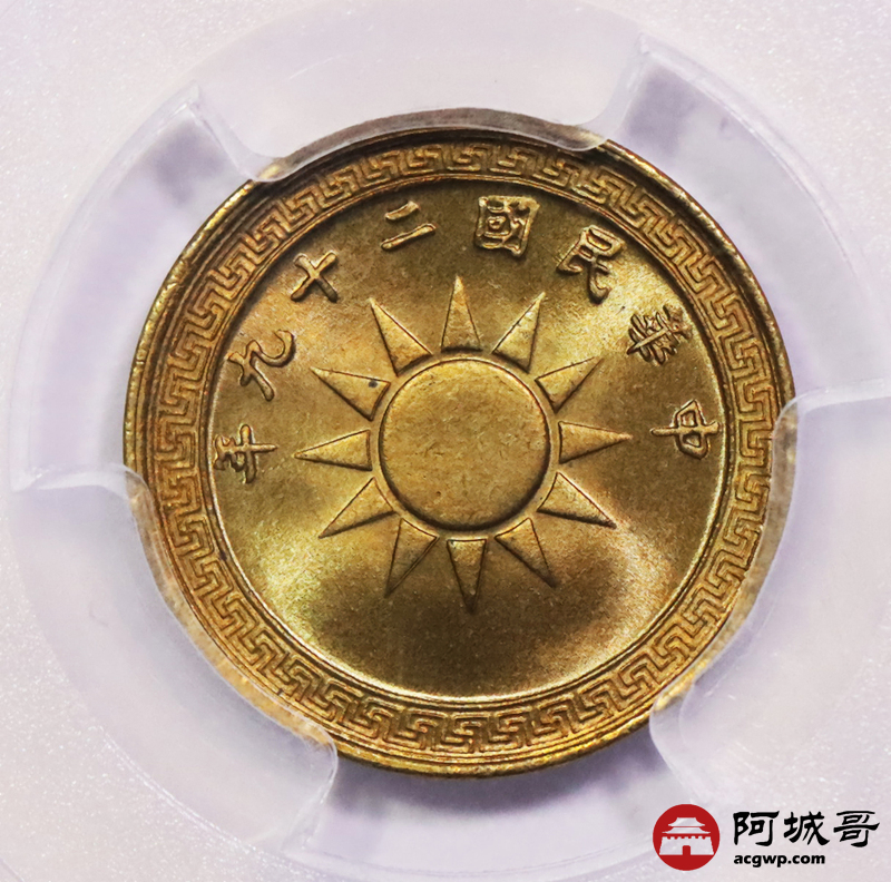 Lot:13 原光 民国二十九年布图铜币二分 PCGS MS66
