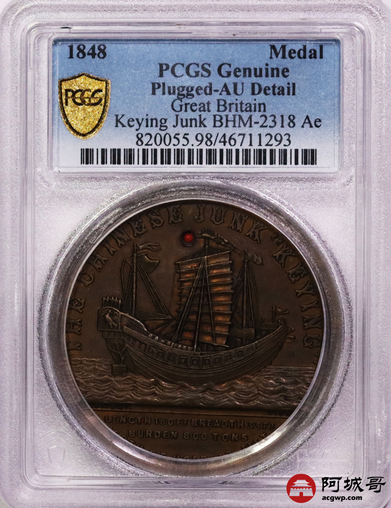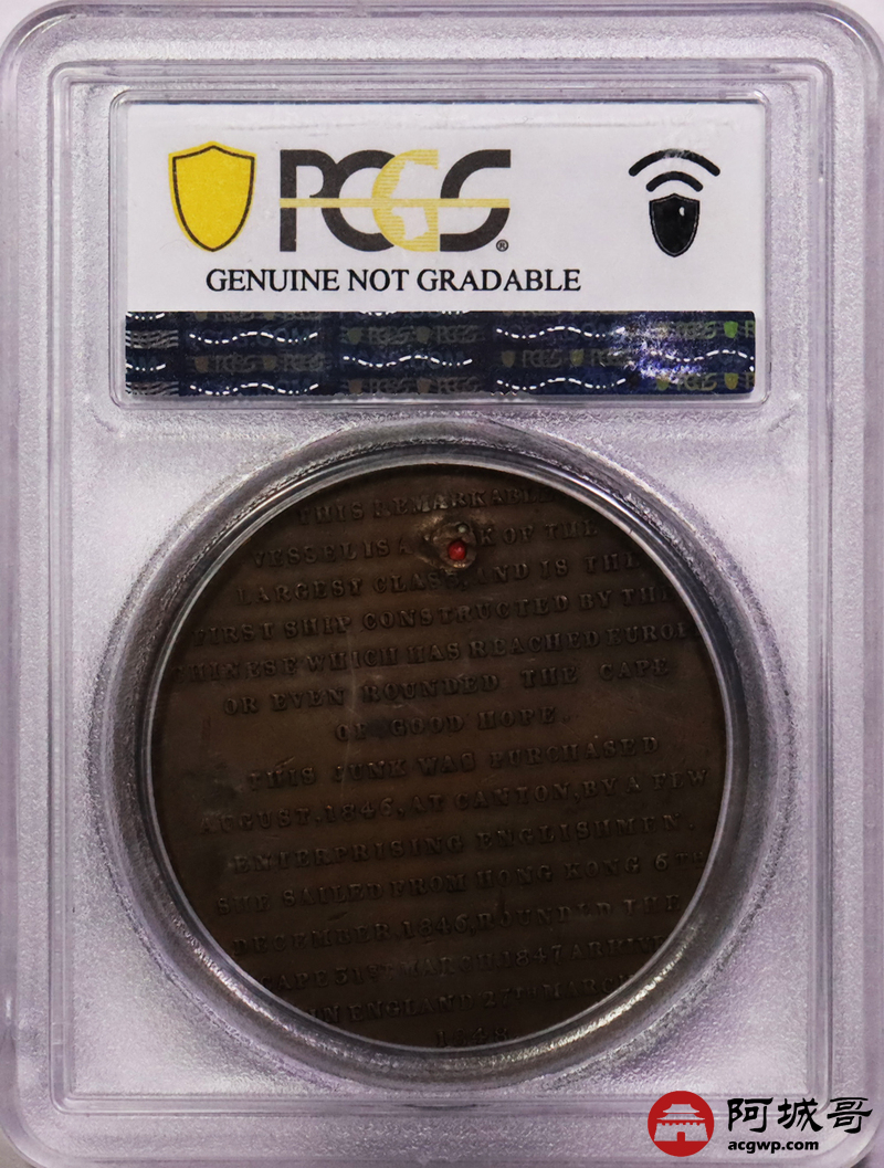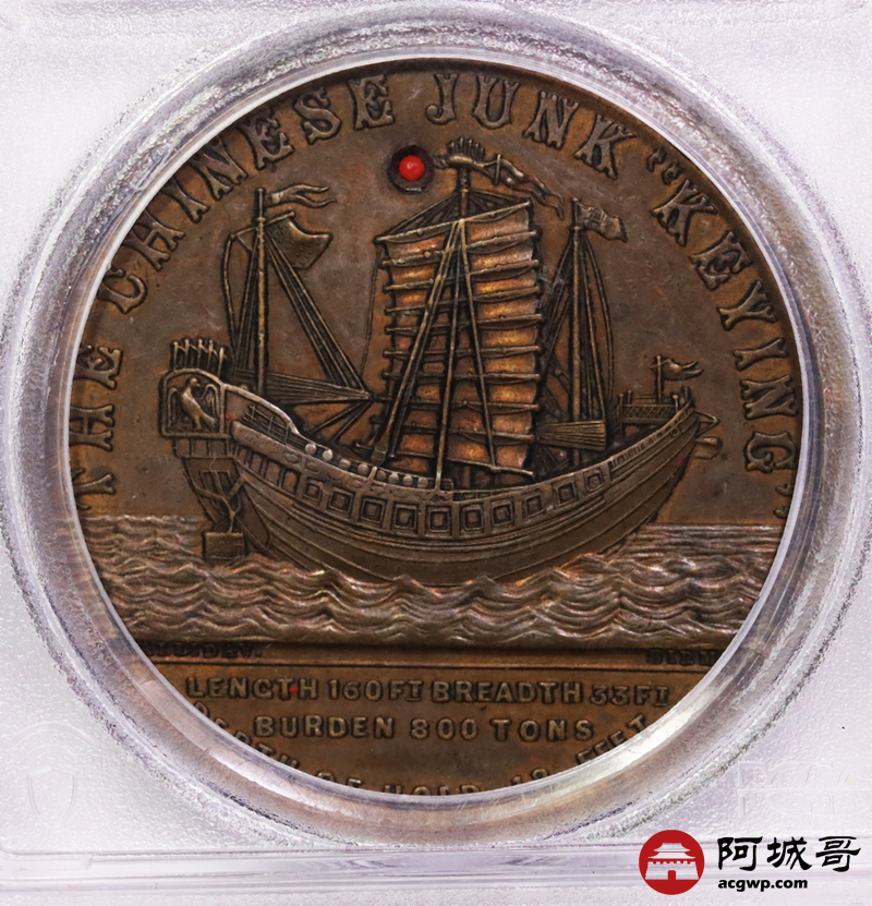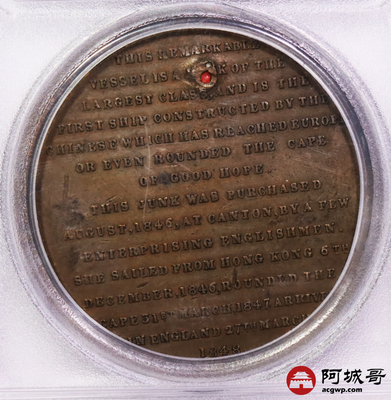 Lot:27 1848年耆英号帆船大铜章 红珠镶嵌稀少 PCGS AU