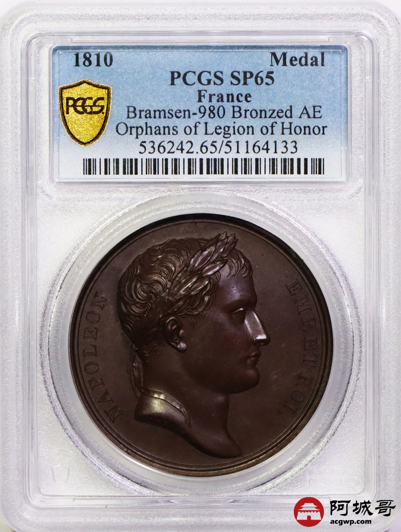 Lot:5 PCGS SP65 法国1810年拿破仑荣誉军团铜章 原铸冠军分