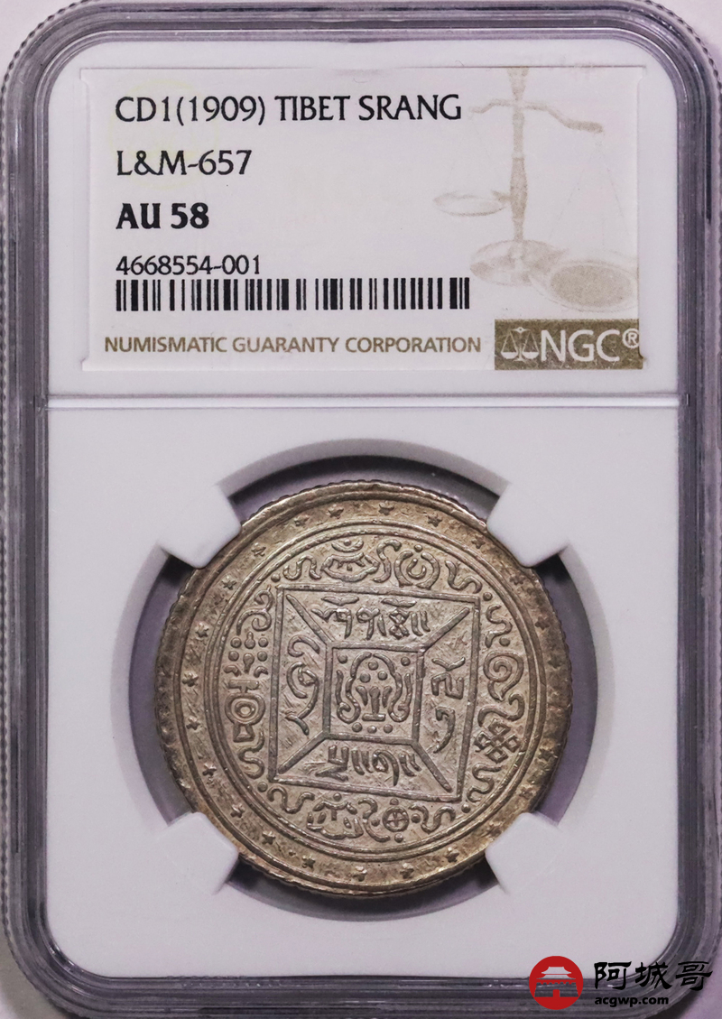 Lot:4 西藏方块一两桑康银币 NGC AU58