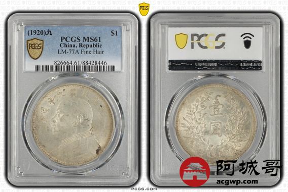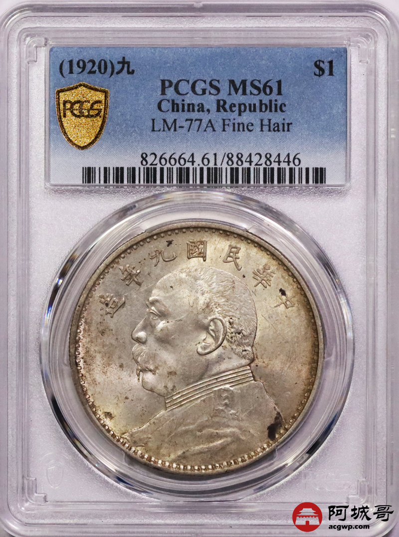 Lot:18 原色光 民国九年精发大头壹圆 PCGS MS61