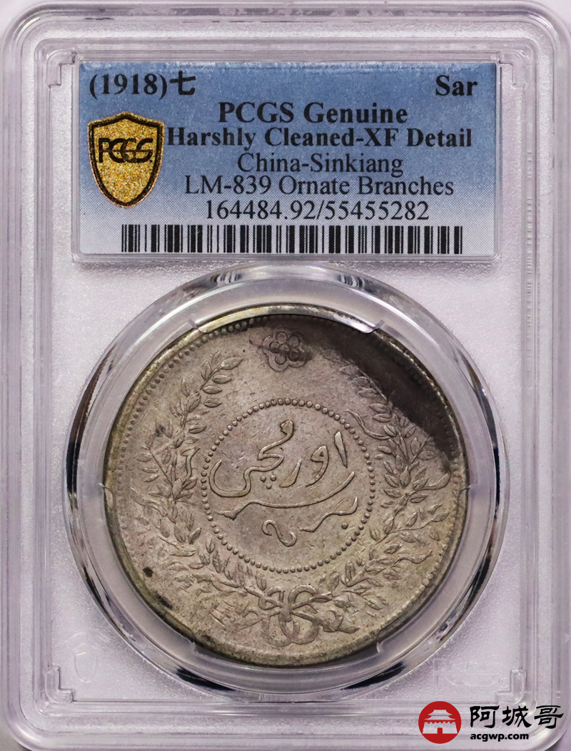 Lot:22 原味 包浆 新疆迪化七年一两 PCGS XF