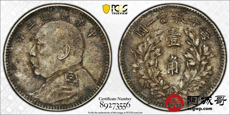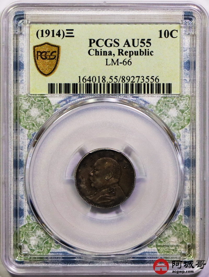 Lot:3 深打 底光 酱彩 三年大头壹角 PCGS AU55