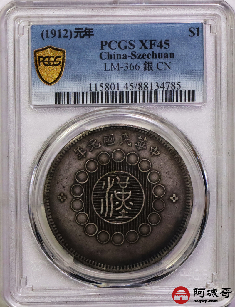 Lot:13 深打 环彩老包浆 四川军政府壹圆 PCGS XF45