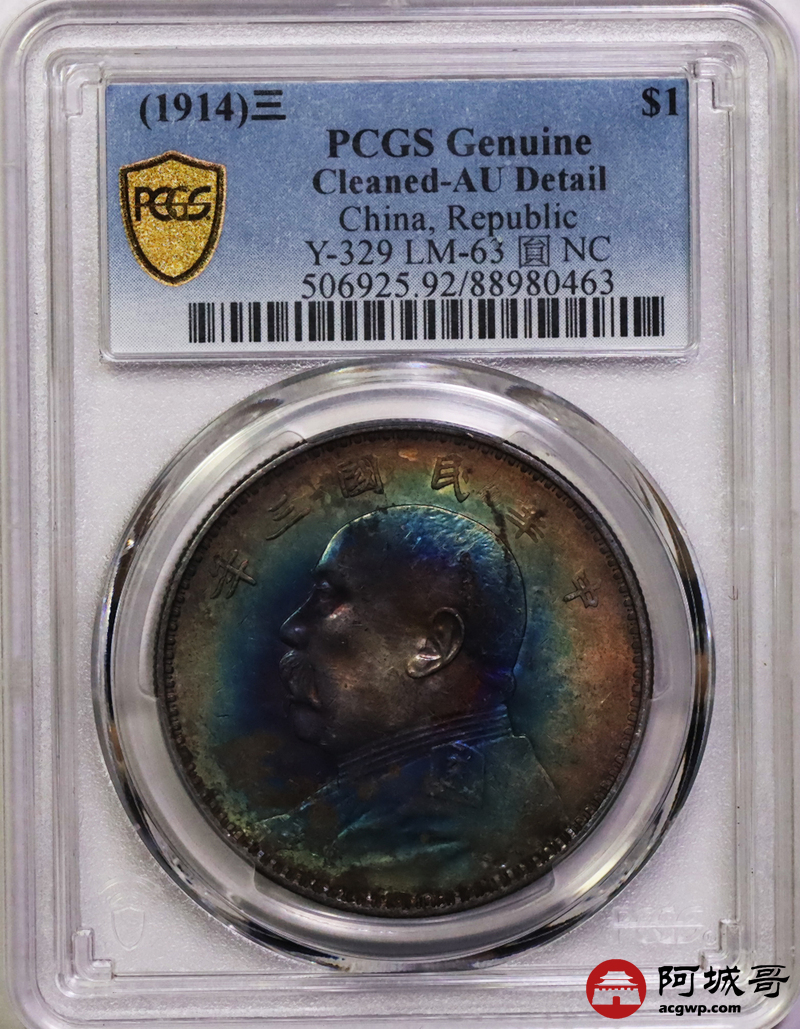Lot:28 炫丽五彩 三年大头壹圆 PCGS AU