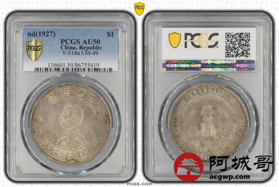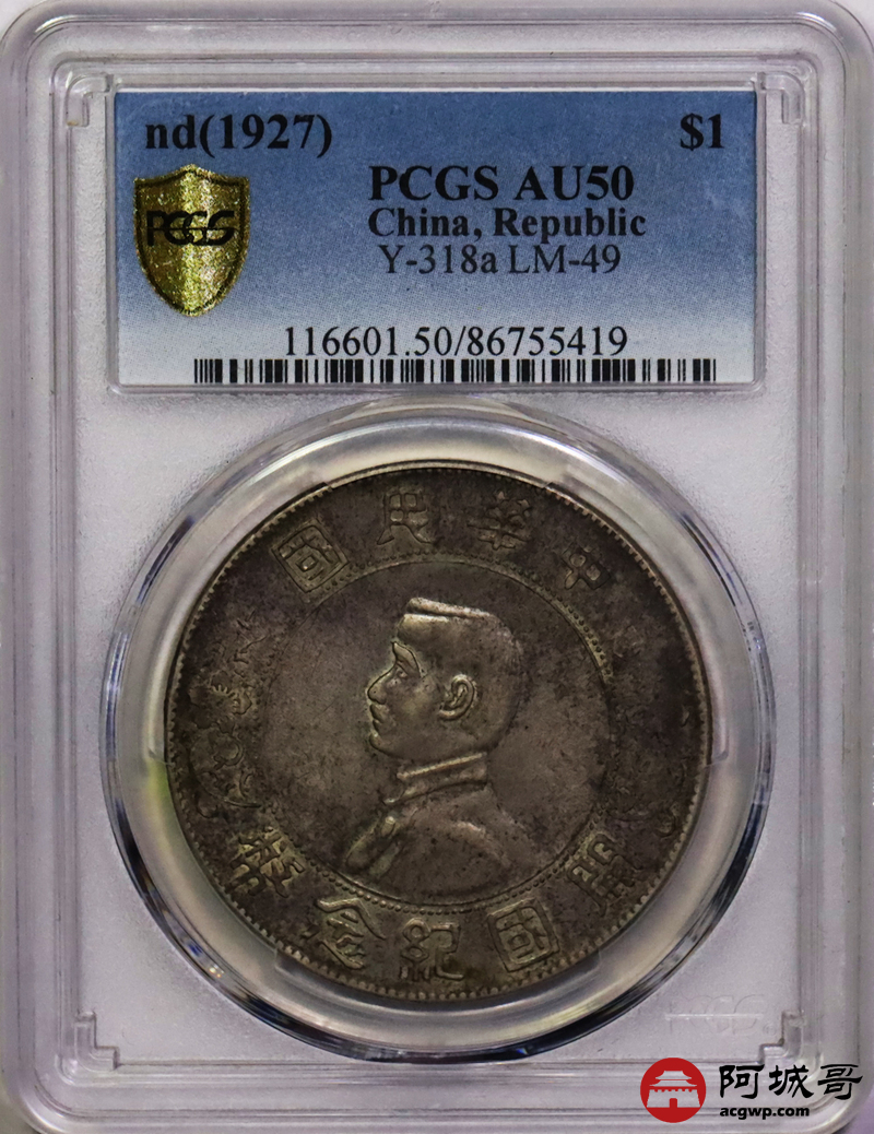 Lot:3 原味 包浆 孙像小头壹圆 PCGS AU50