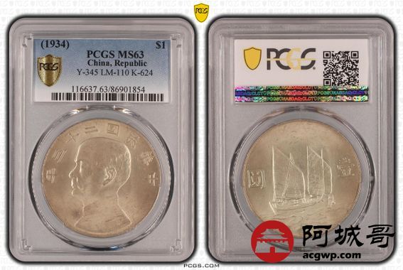 Lot:10 黄油原光 二十三年船洋 PCGS MS63