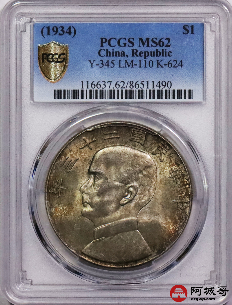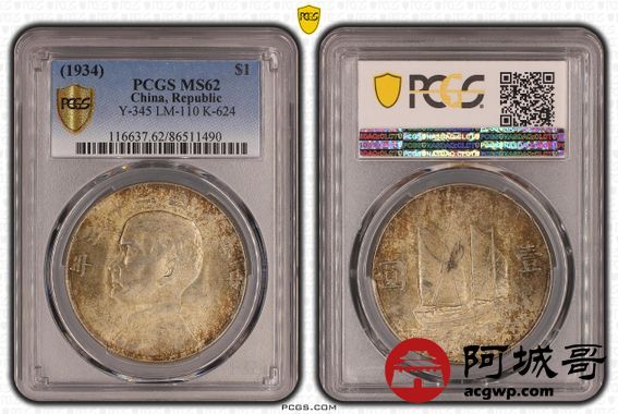 Lot:12 五彩原光 民国二十三年船洋 PCGS MS62