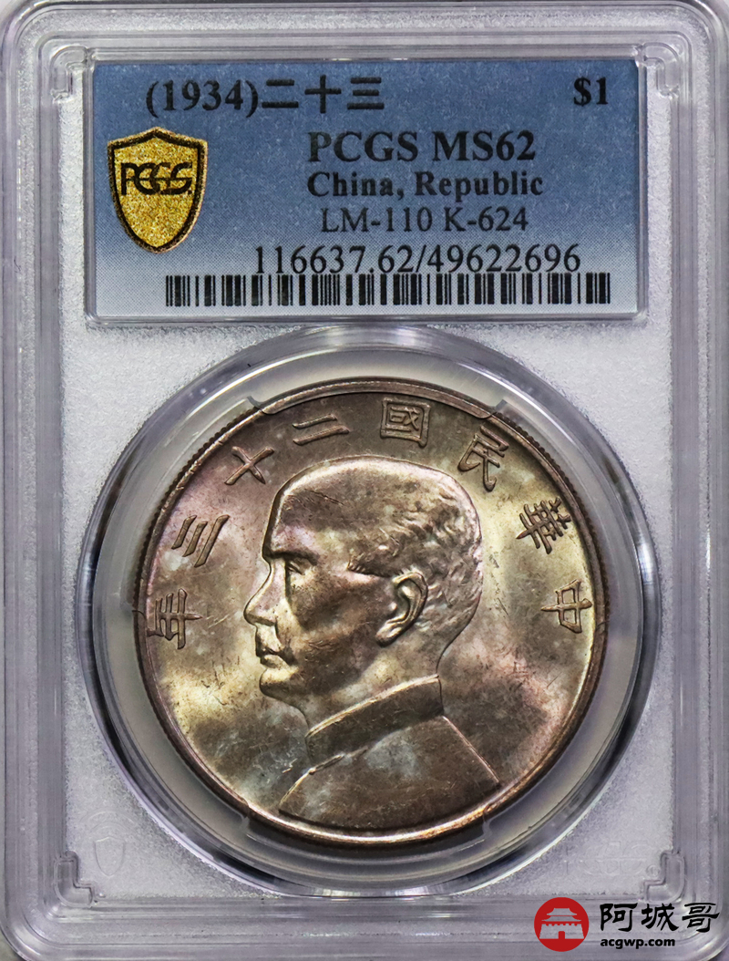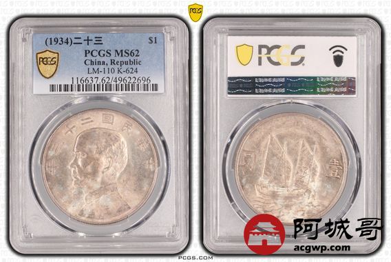 Lot:4 粉转光 二十三年船洋 PCGS MS62