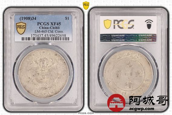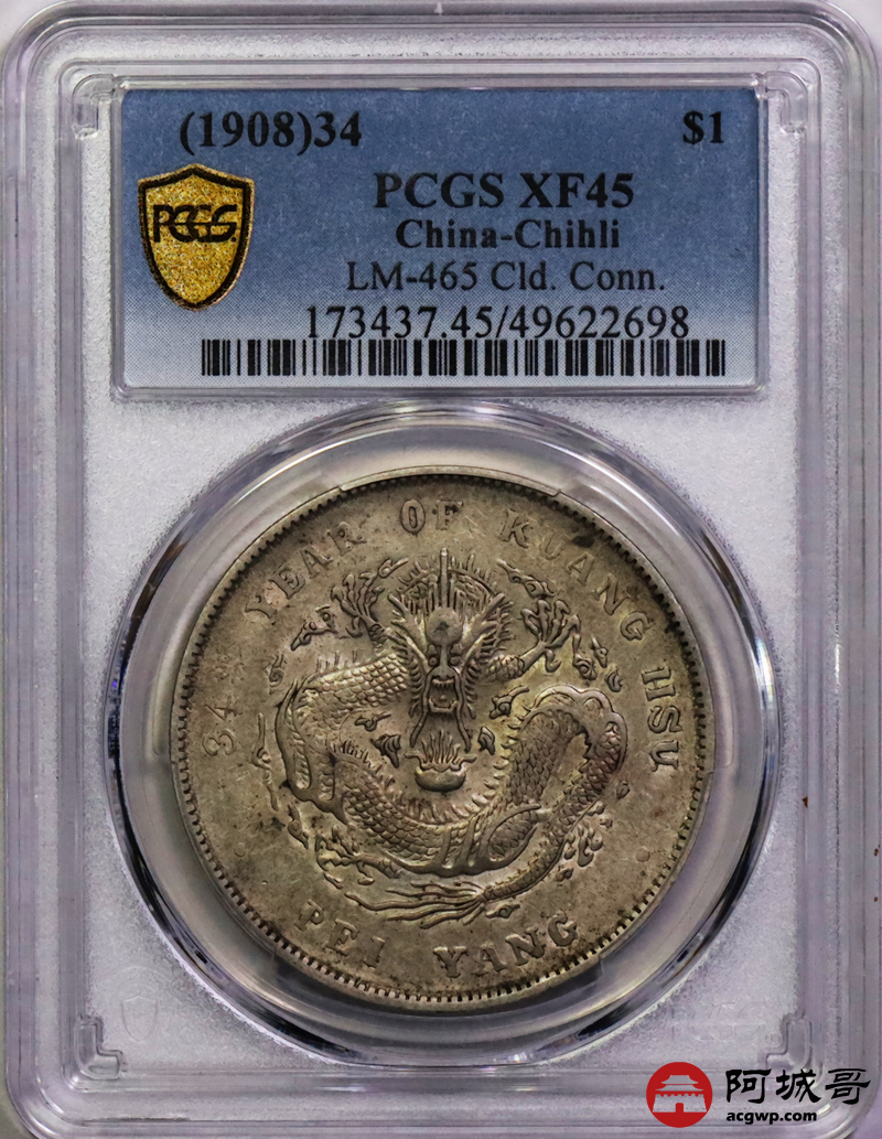 Lot:15 原味黄油底光 北洋34七钱二分 PCGS XF45