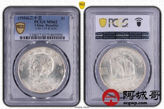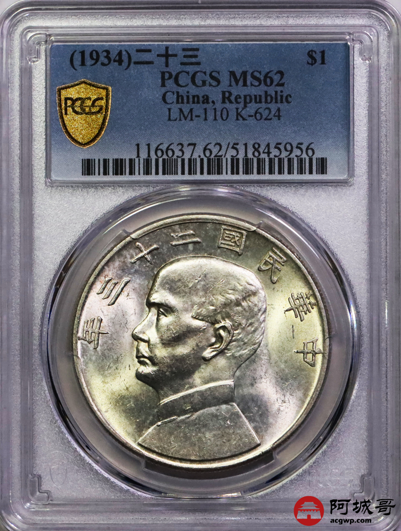 Lot:2 黄油原光 二十三年船洋 PCGS MS62