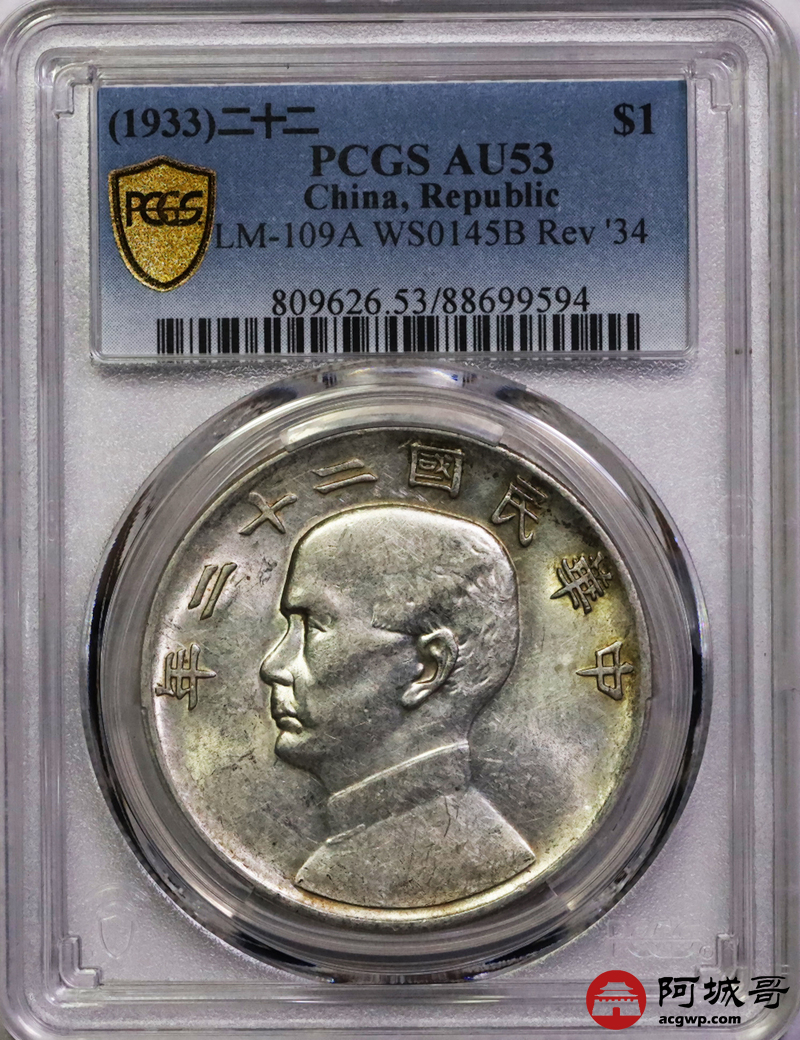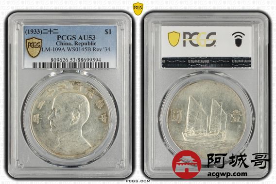 Lot:10 转光二十二年船洋23年背 PCGS AU53
