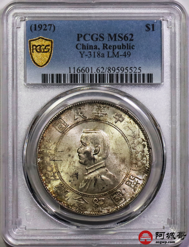 Lot:25 五彩原光 孙像小头壹圆点草出头圆 PCGS MS62