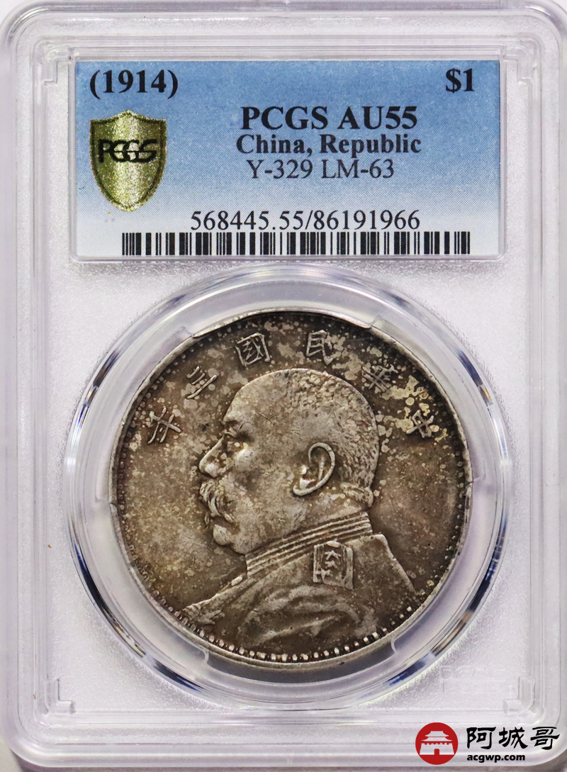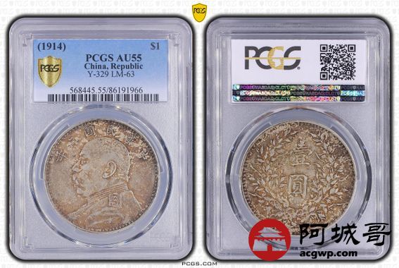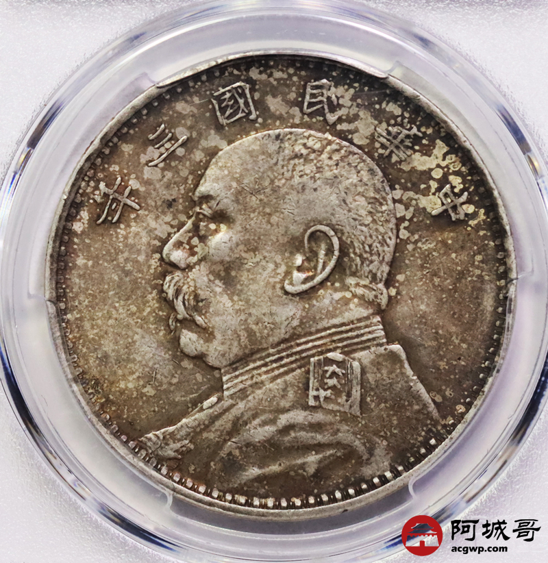 Lot:30 五彩 包浆 三年大头壹圆 PCGS AU55