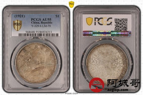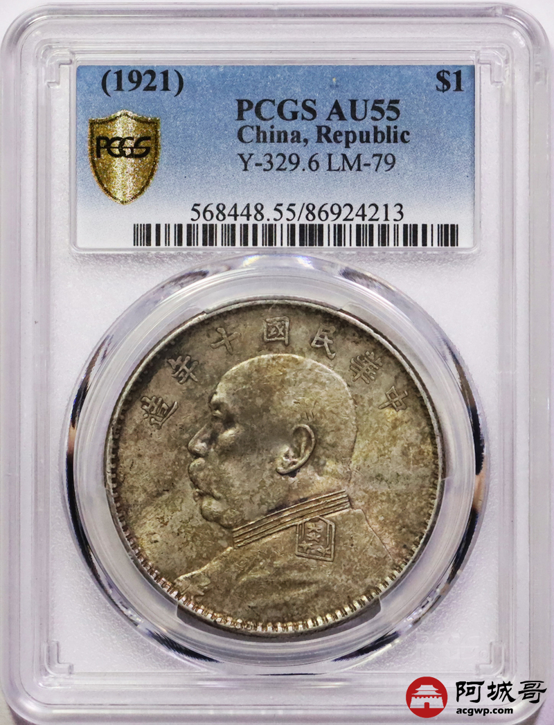 Lot:40 淡彩底光 十年大头壹圆 PCGS AU55