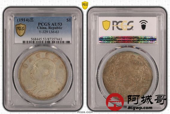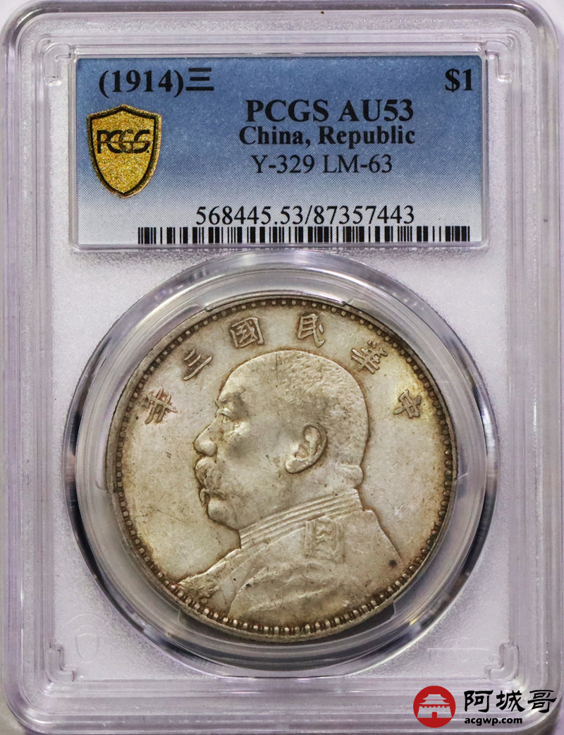 Lot:26 原味老包浆 三年大头壹圆 PCGS AU53