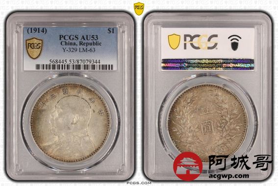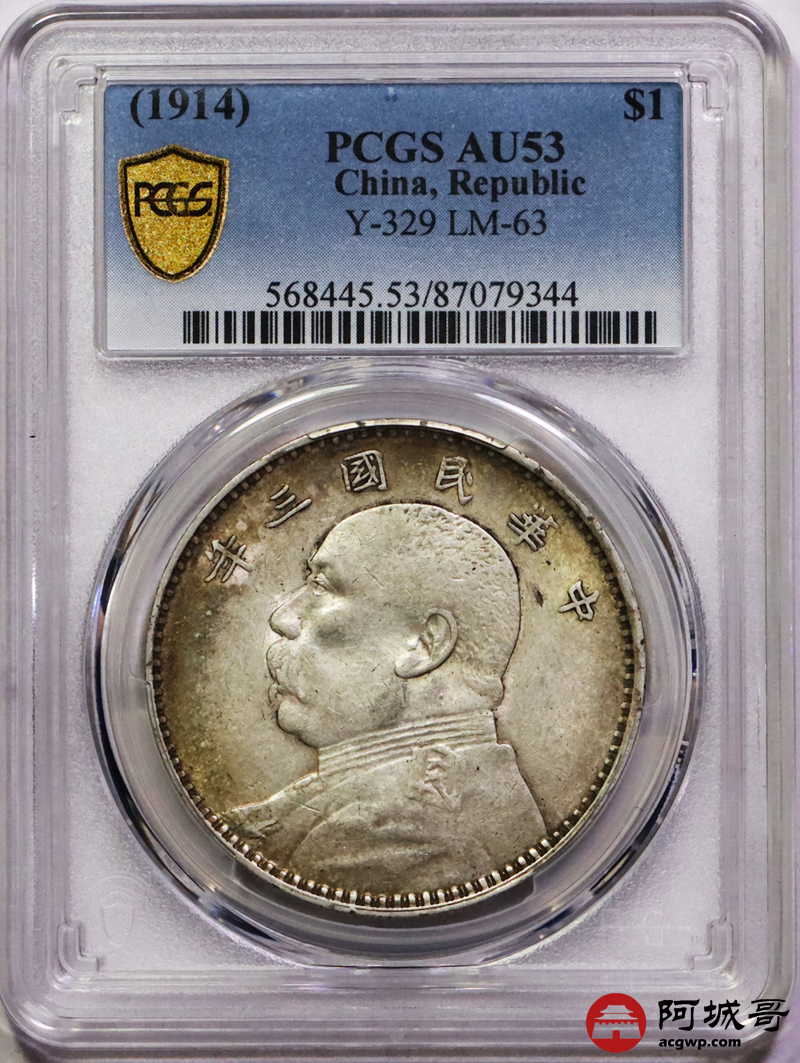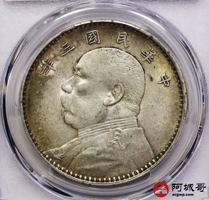 Lot:42 五彩底光 三年大头壹圆 PCGS AU53