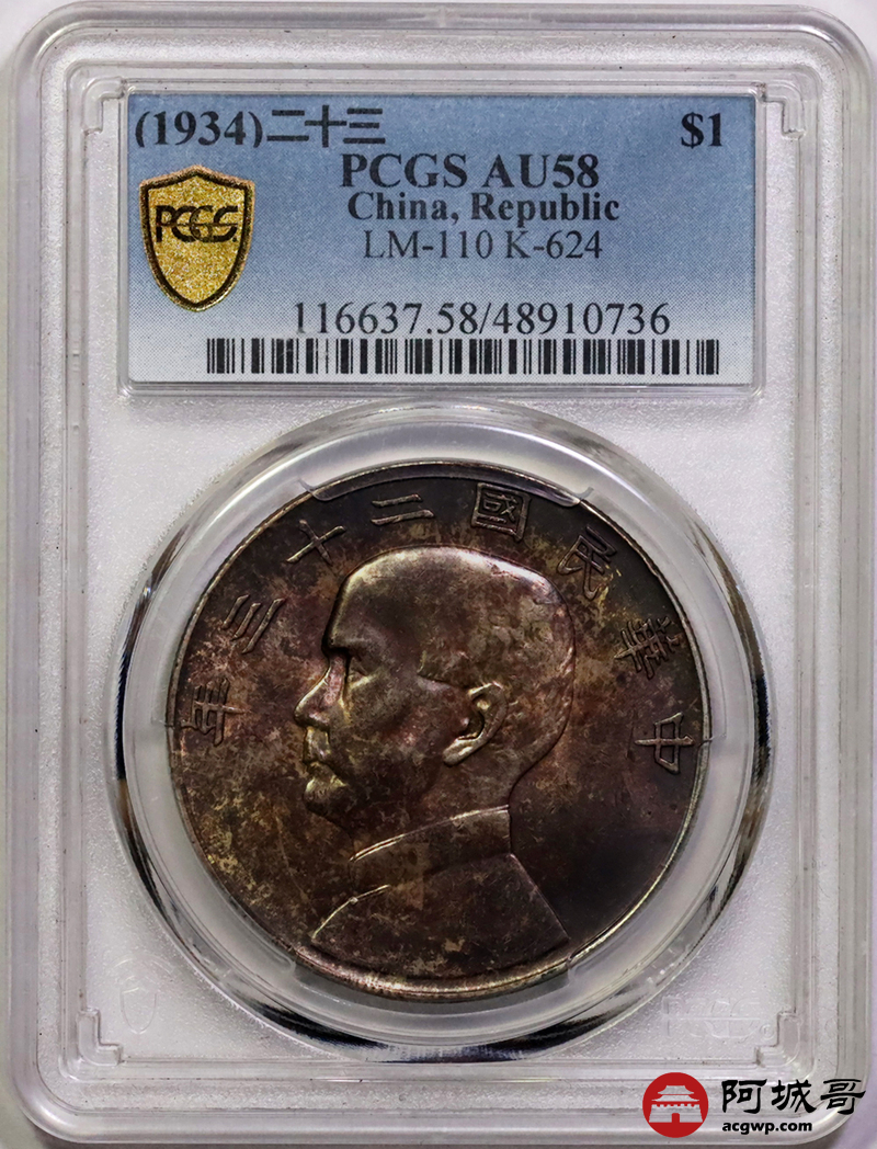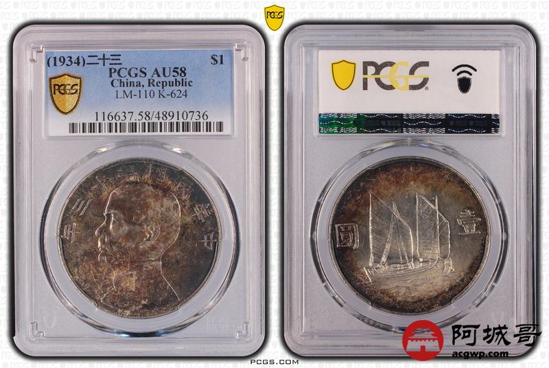 Lot:13 a酱环五彩 二十三年船洋 PCGS AU58