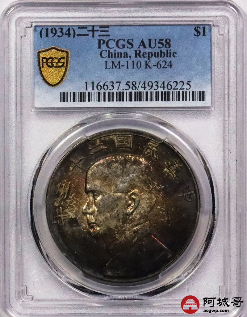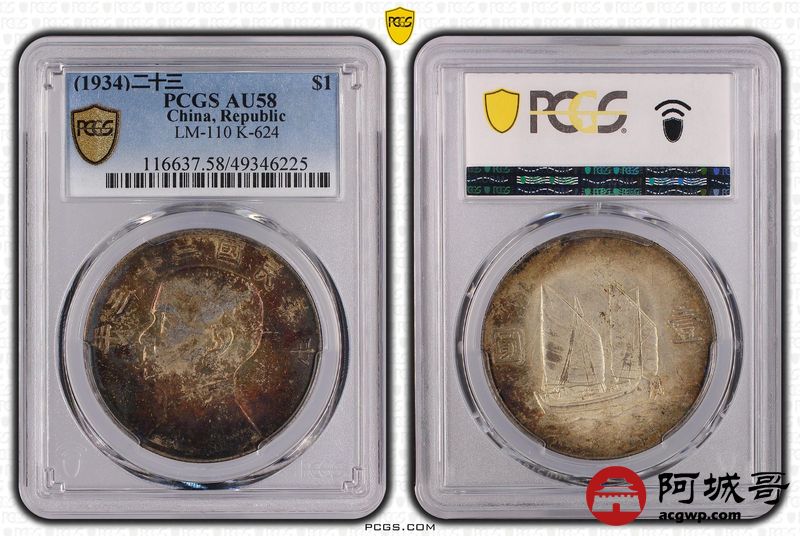 Lot:1 酱红五彩 二十三年船洋 PCGS AU58