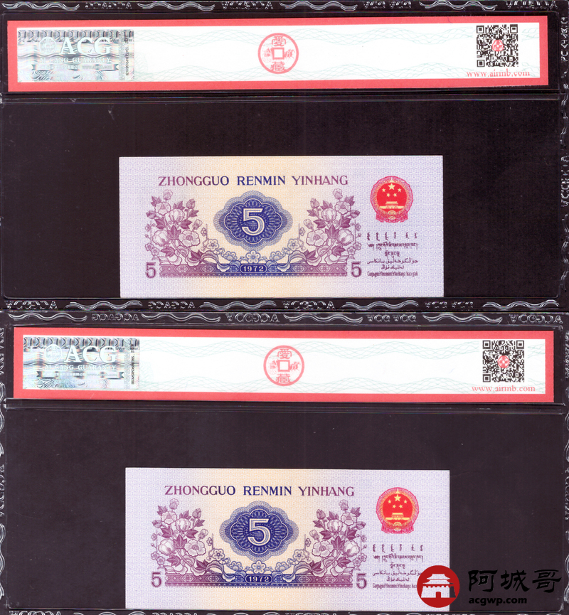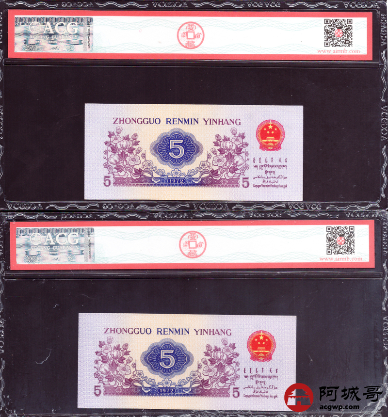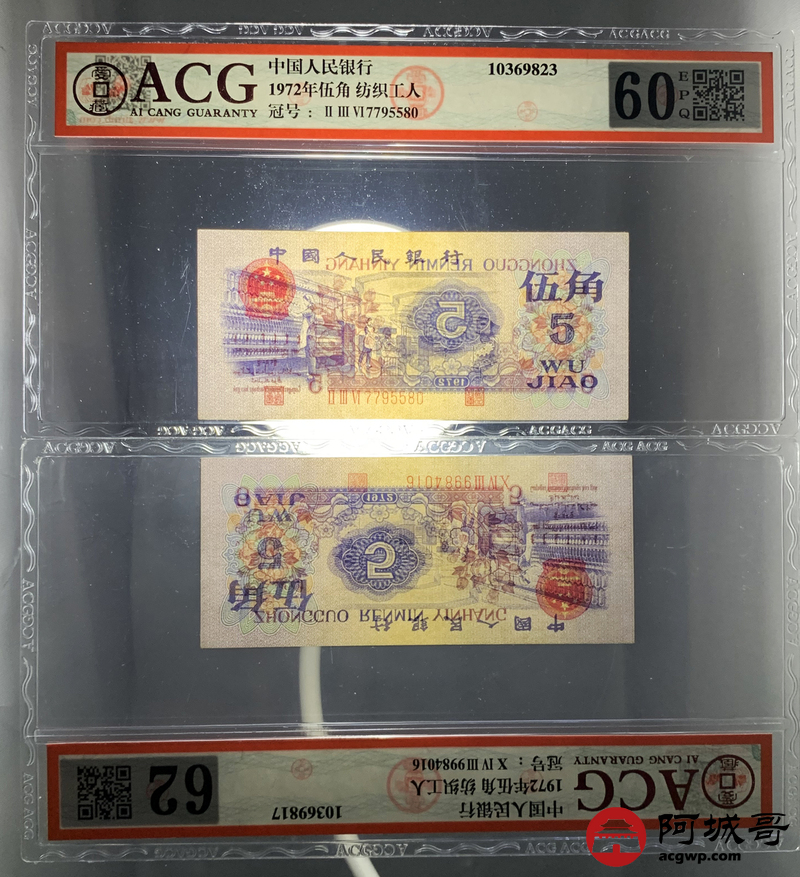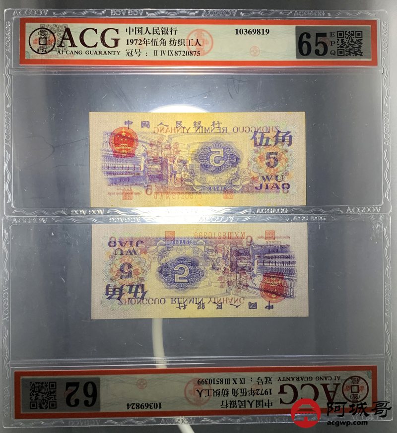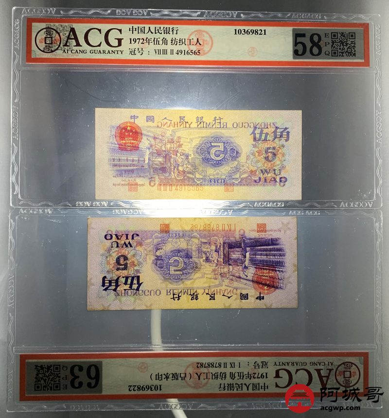 Lot:60 三版 1972 纺织工人 伍角 ACG评级8张一组