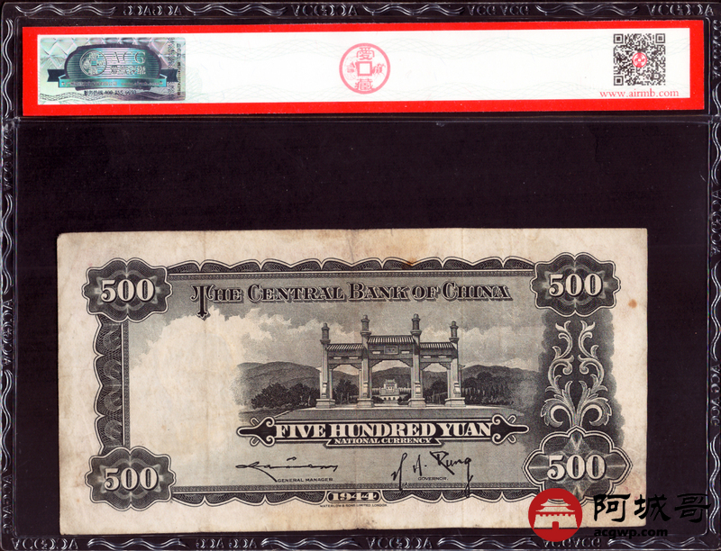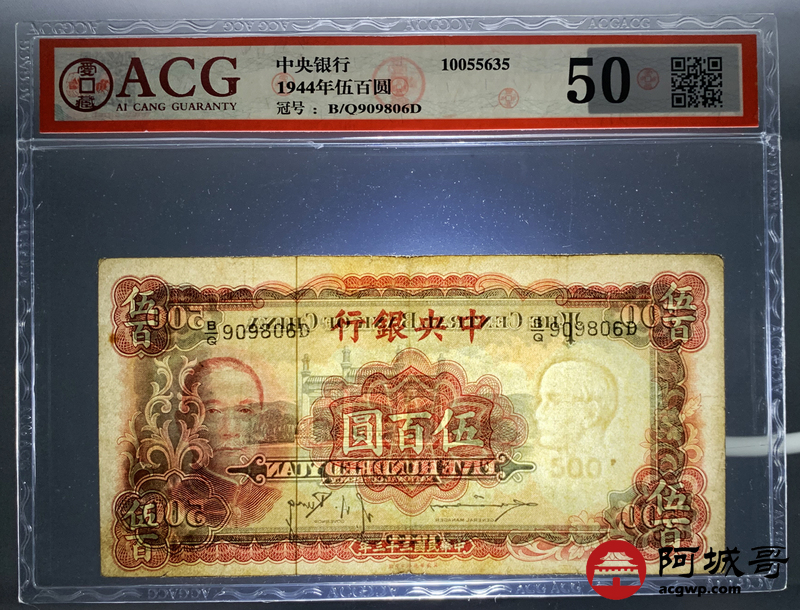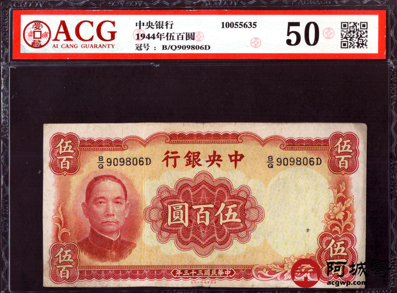 Lot:30 民国三十三年 中央银行伍佰圆 ACG 50