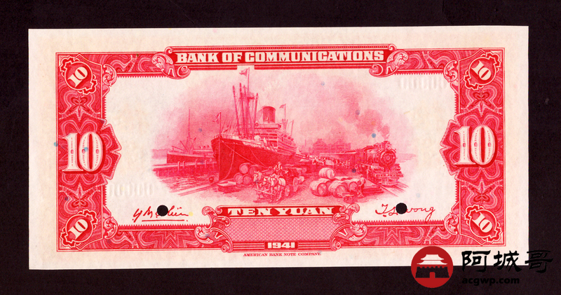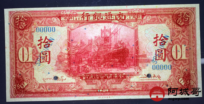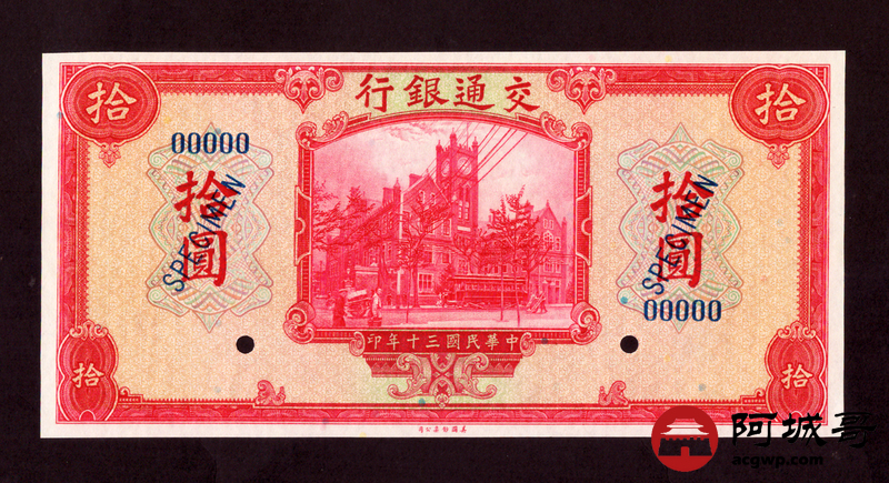 Lot:9 民国三十年 交通银行拾圆 票样
