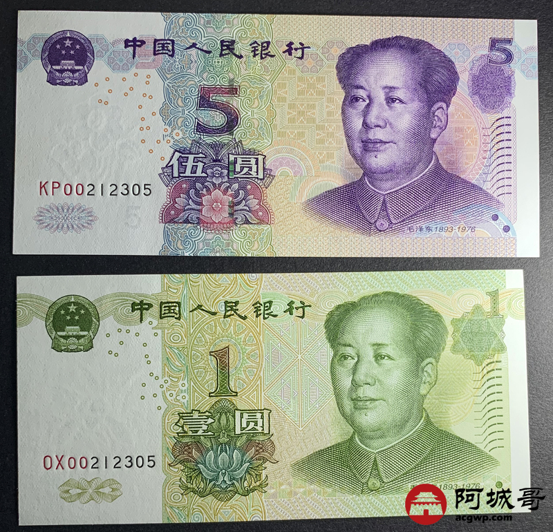 Lot:13 人民币 一套6张 同号