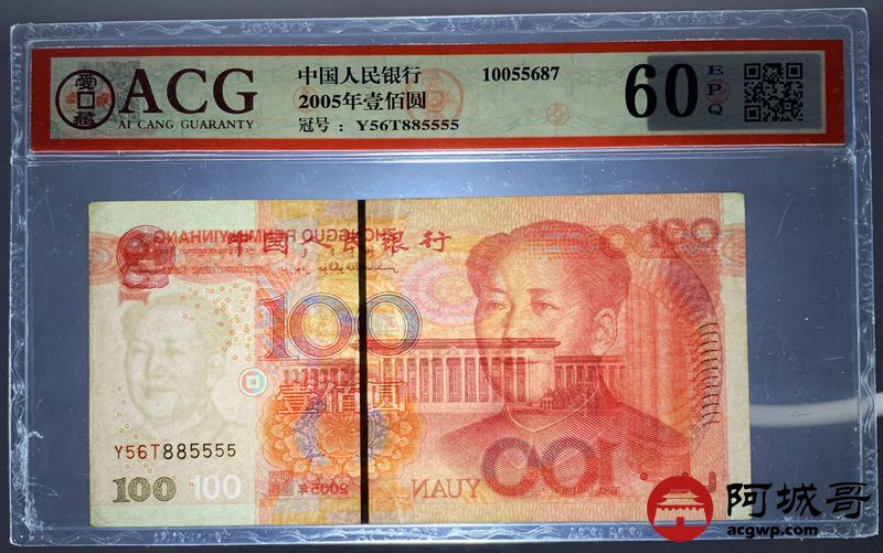 Lot:34 零五年 中国人民银行 100元 ACG 60EPQ 好号无347尾号狮子号55555