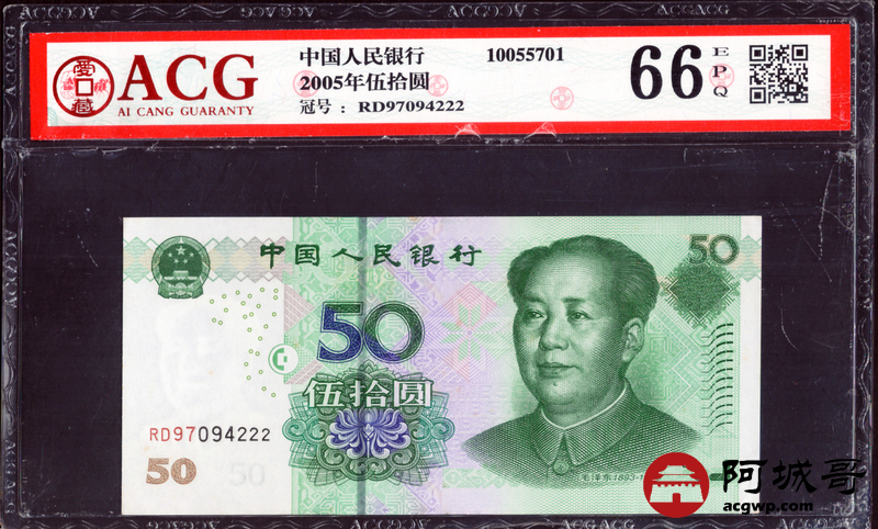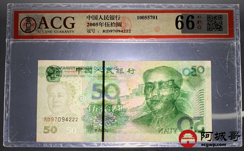 Lot:39 零五年 中国人民银行 50元 ACG 66EPQ 尾号豹子号