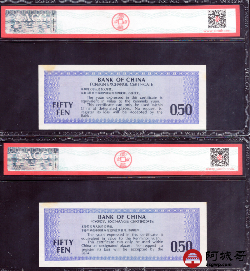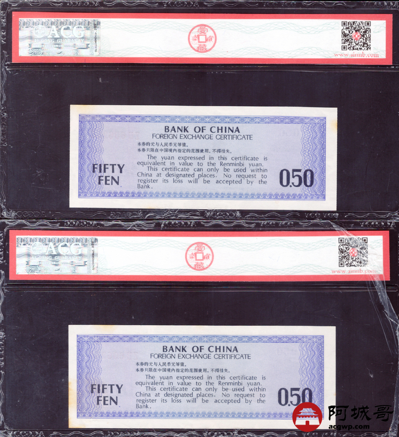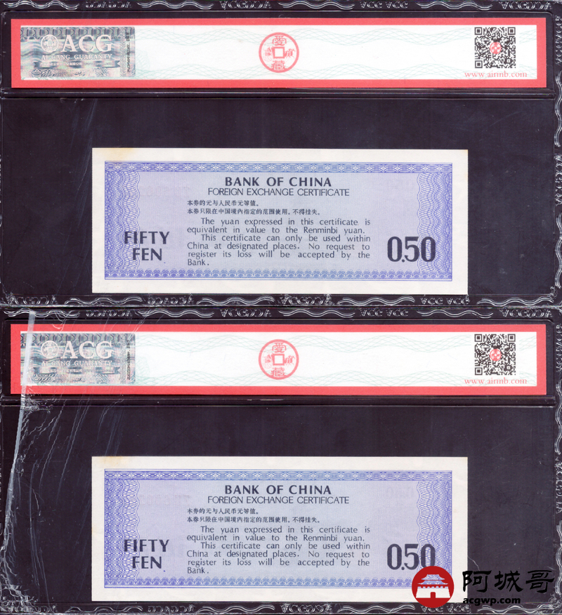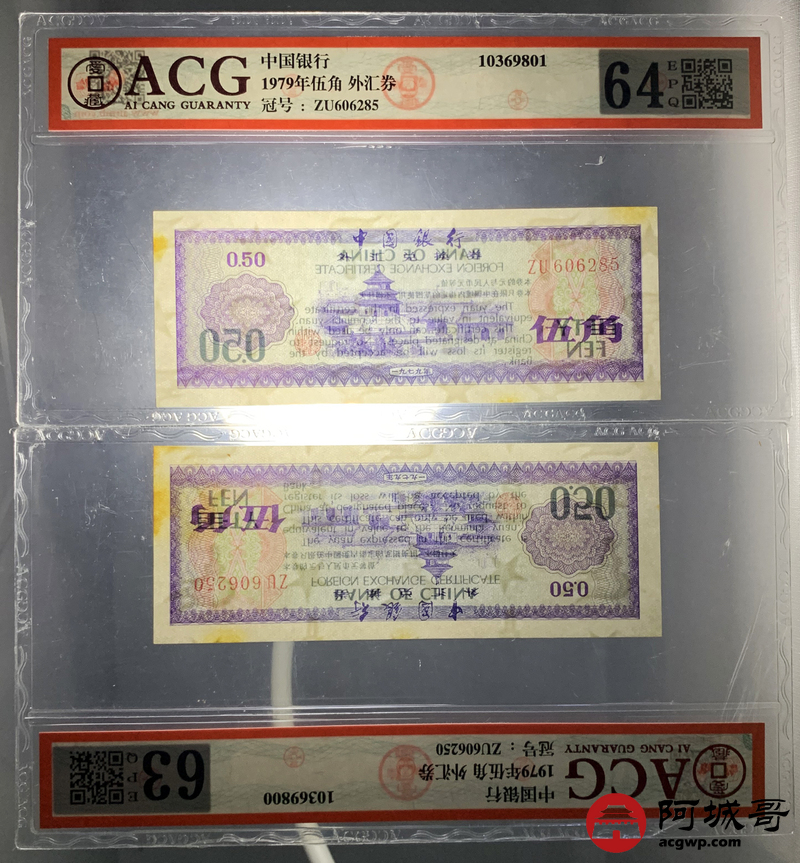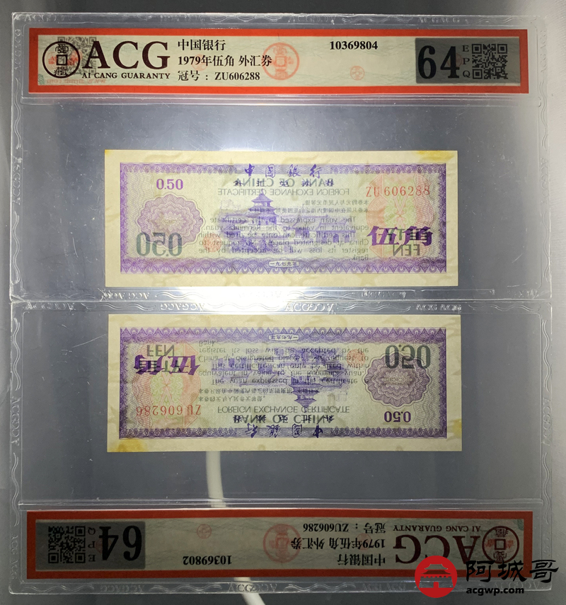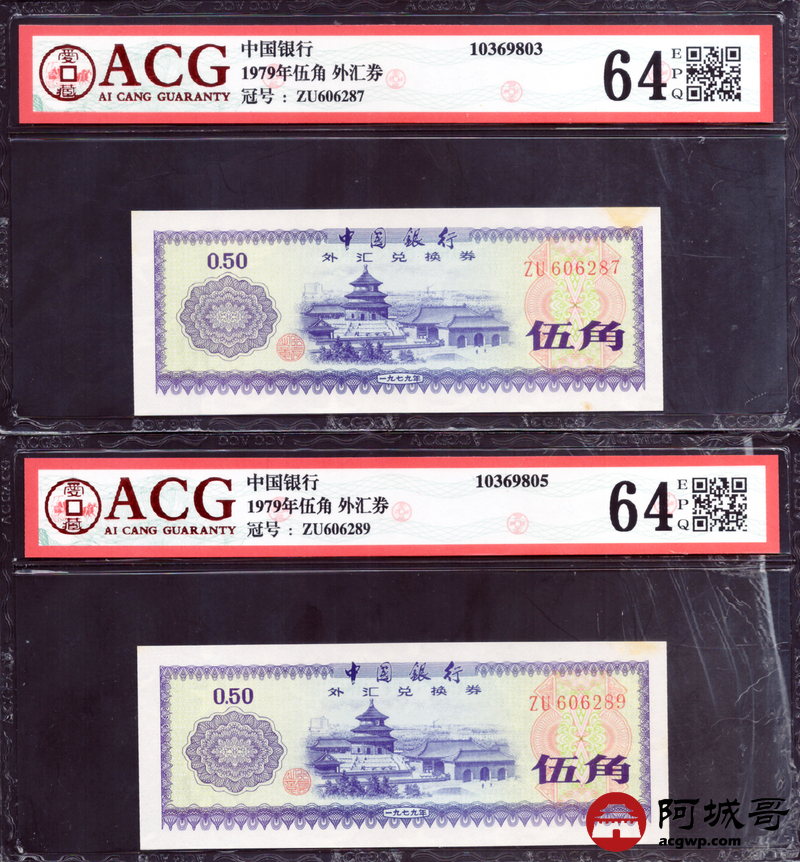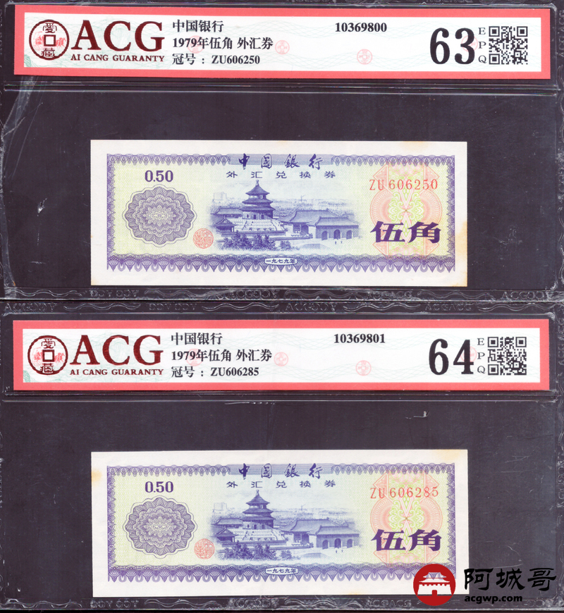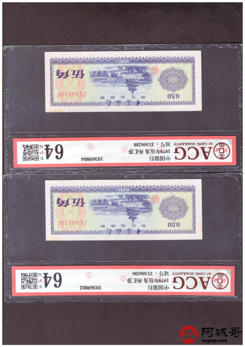 Lot:27 1979年 伍角 外汇券 ACG 63EPQ、ACG 64EPQ 火炬水印 六张一组