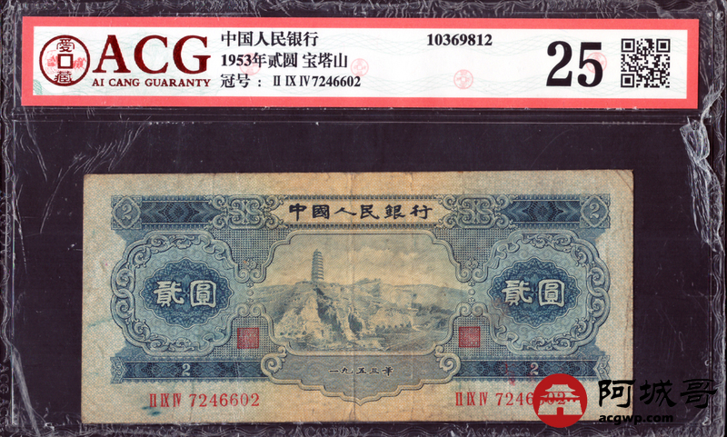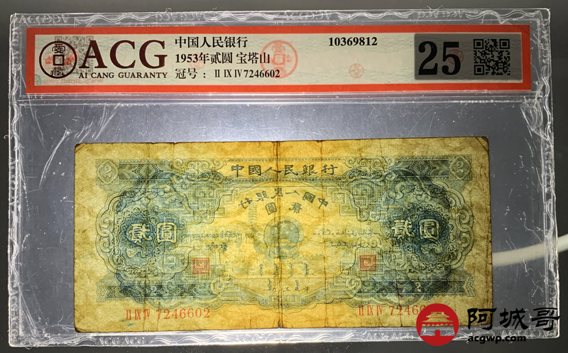 Lot:32 二版 1953年 宝塔山2元 ACG 25