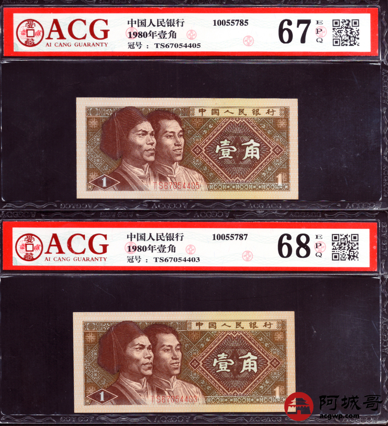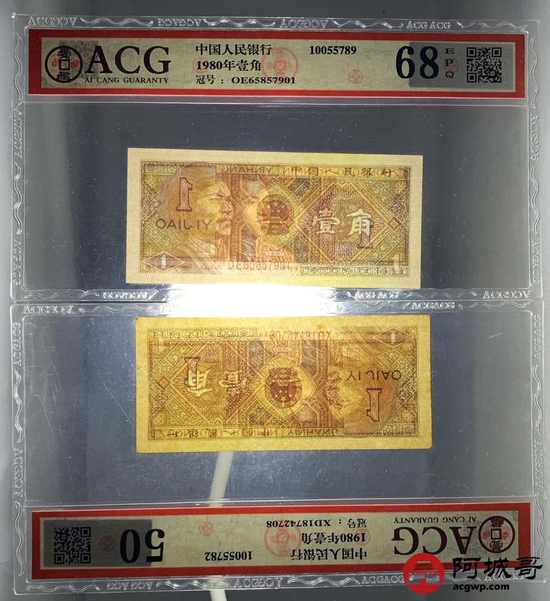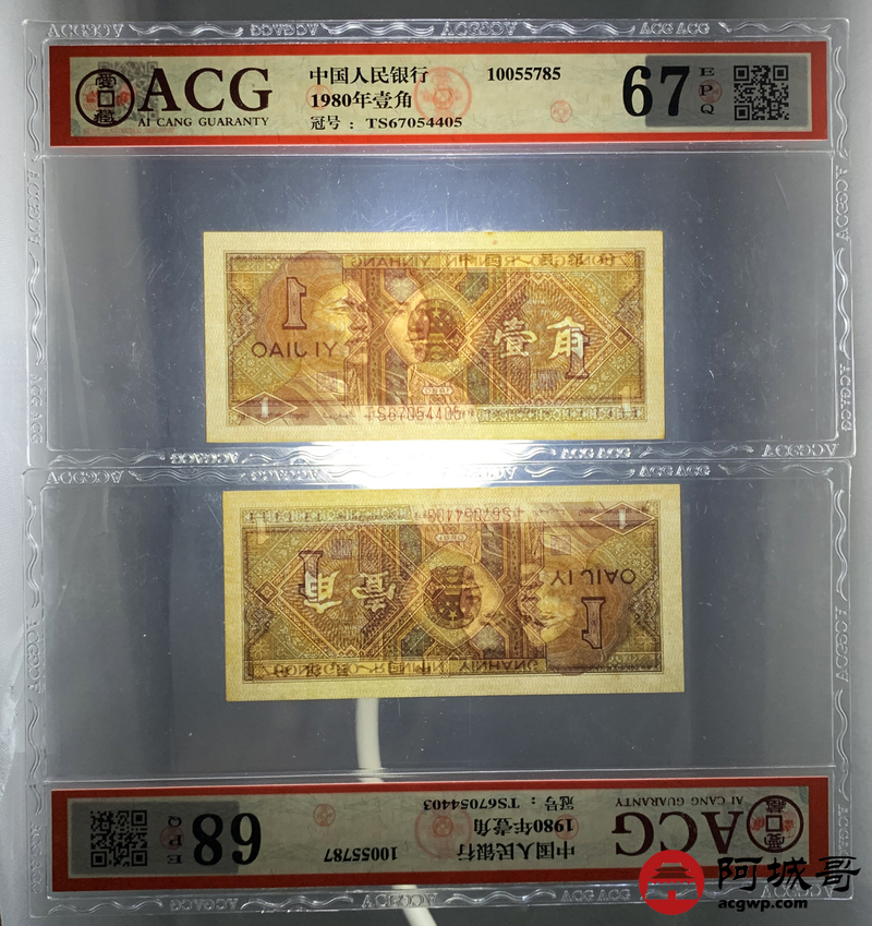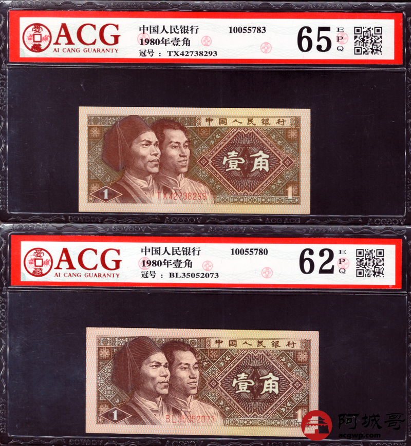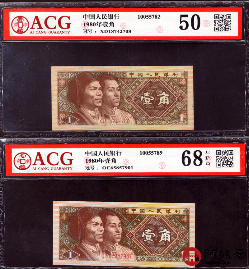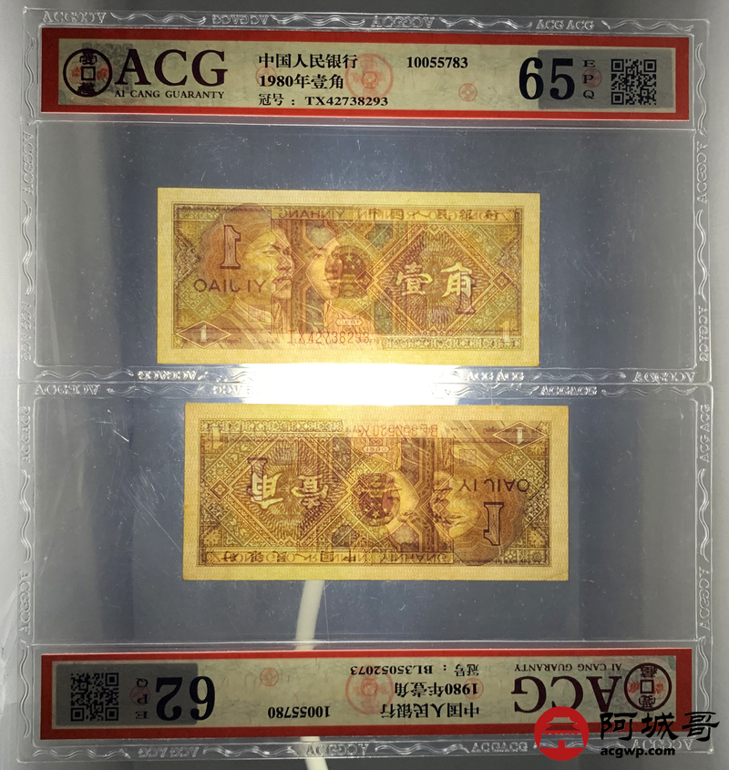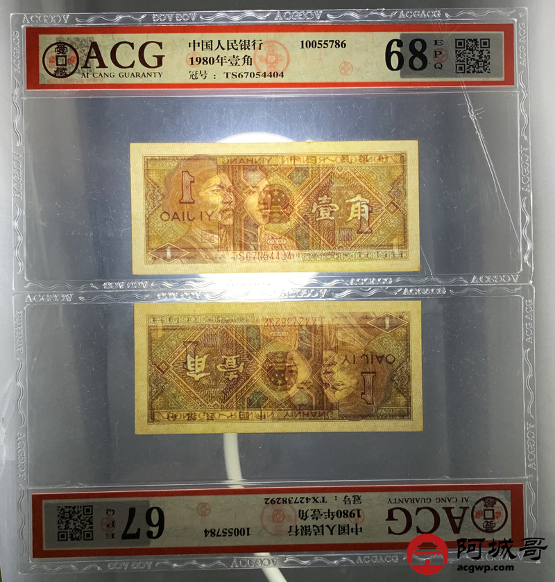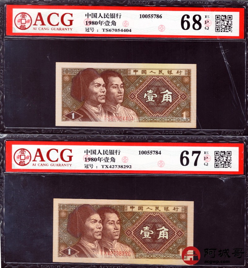 Lot:46 四版 1980年 中国人民银行 1角 ACG评级8张一组