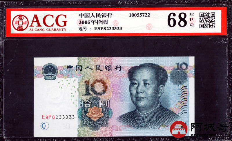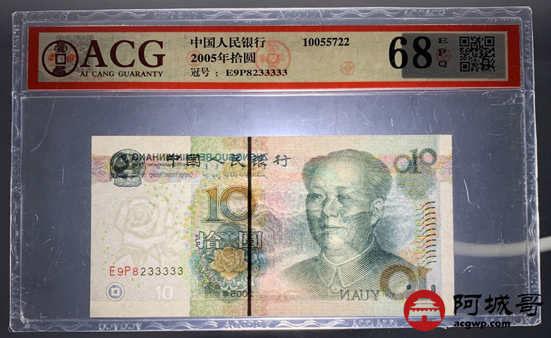Lot:6 零五年 中国人民银行10元 ACG 68EPQ 好号无47尾号大象号