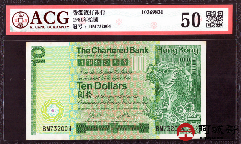 Lot:64 1981香港渣打银行拾元 ACG 50