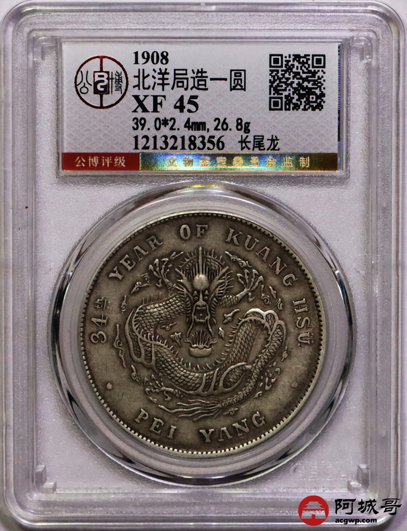 Lot:26 原味老包浆 北洋34七钱二分 公博 XF45