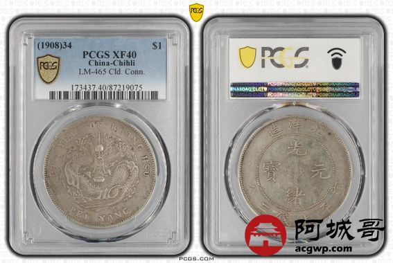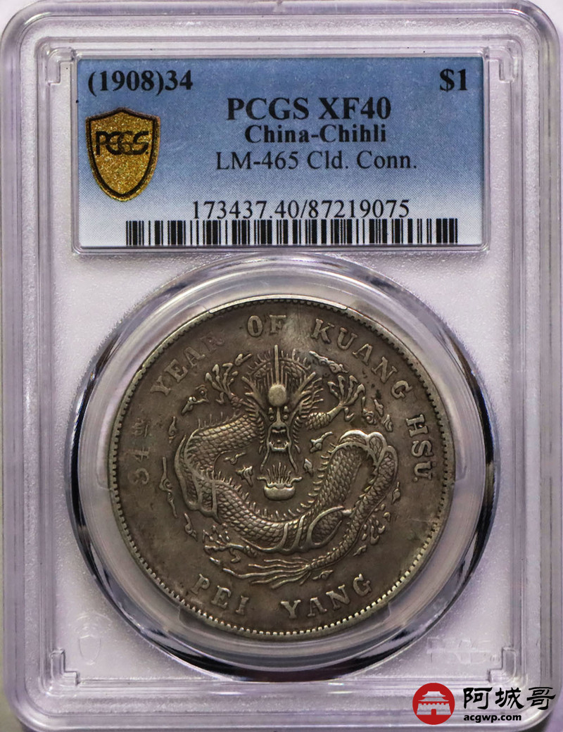 Lot:7 原味 包浆 北洋34年七钱二分 PCGS XF40