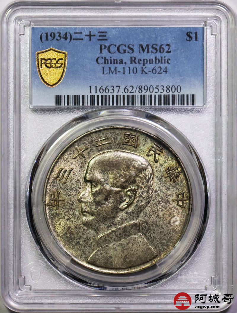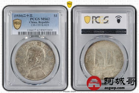Lot:10 黄油彩原光 二十三年船洋 PCGS MS62